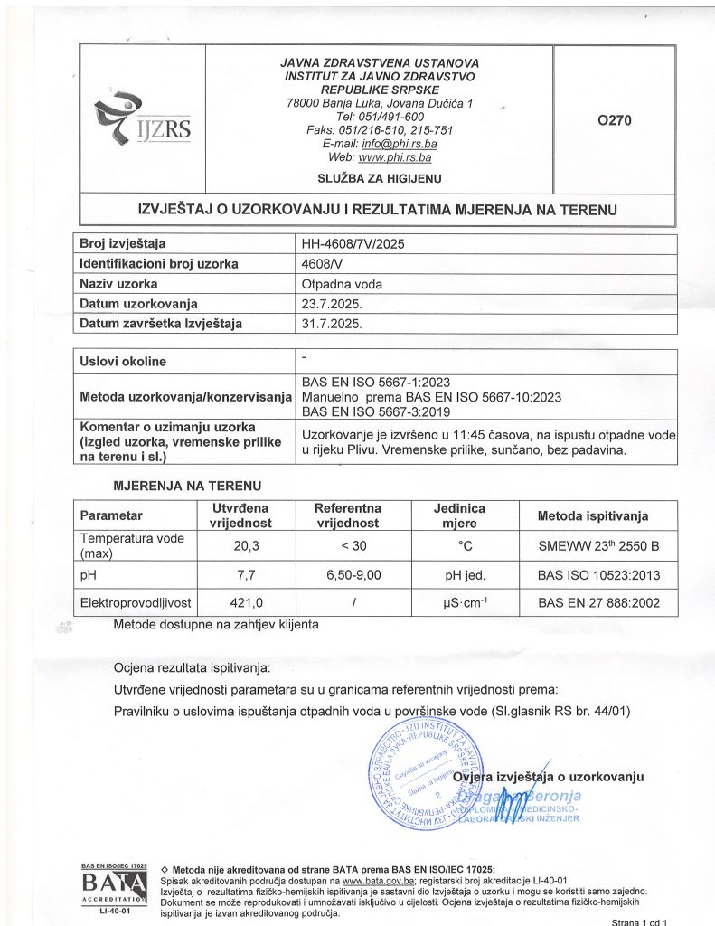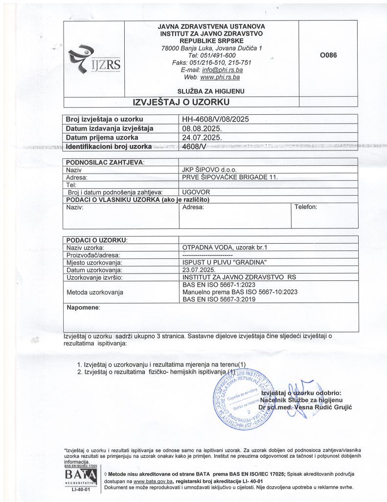 Број извјештаја о узорку: HH-4608/V/08/2025
