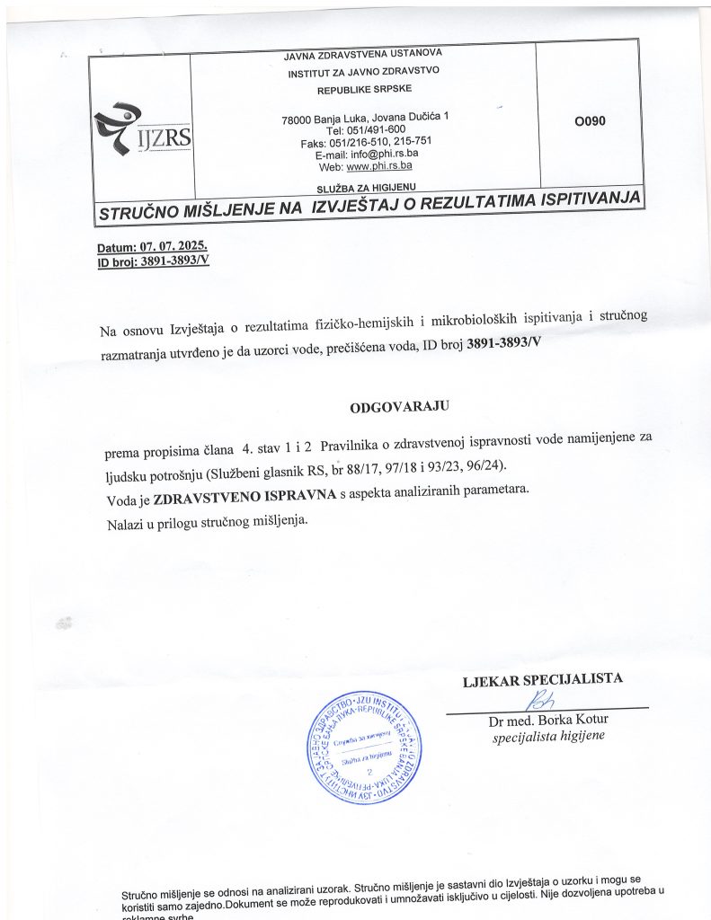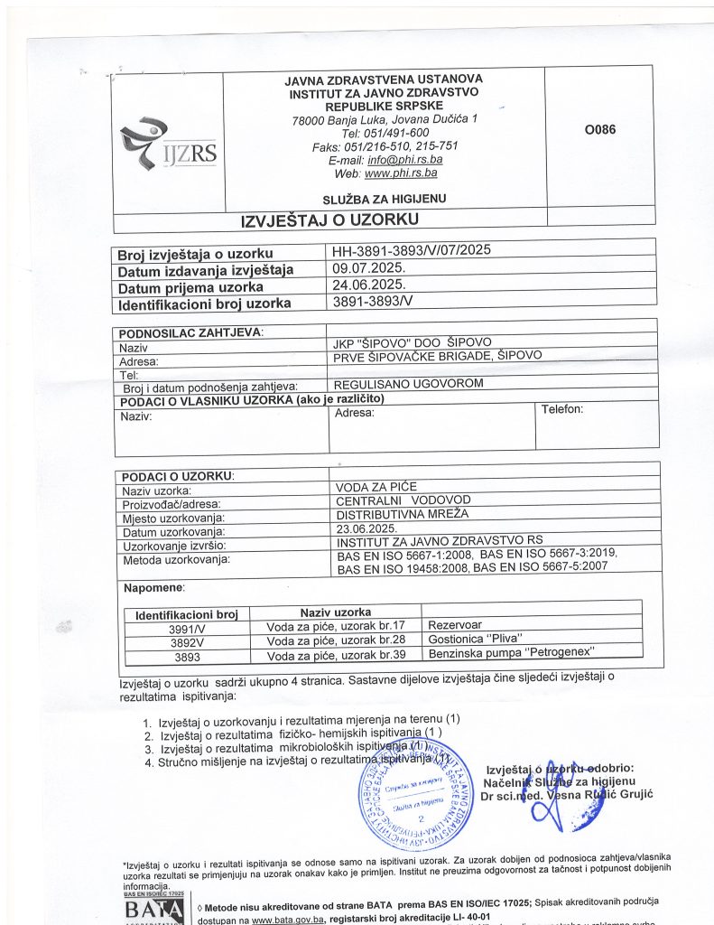 Број извјештаја о узорку: HH-3891-3893/V/07/2025