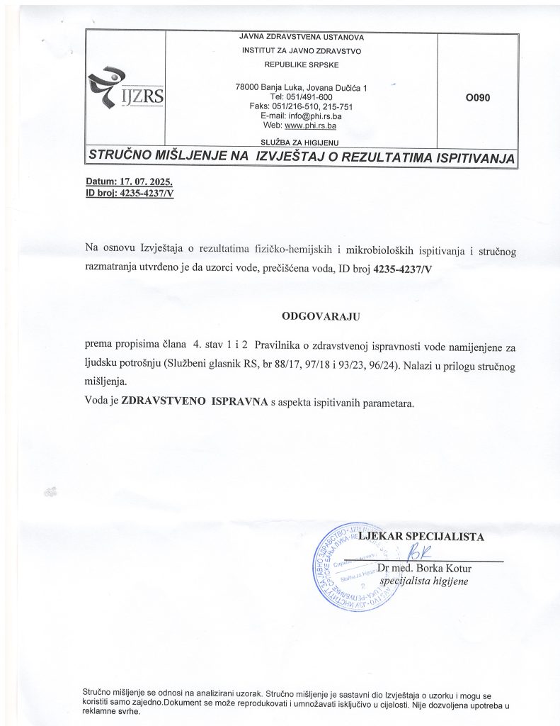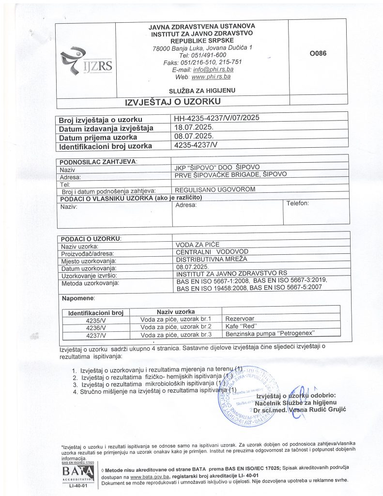 Број извјештаја о узорку: HH-4235-4237/V/07/2025