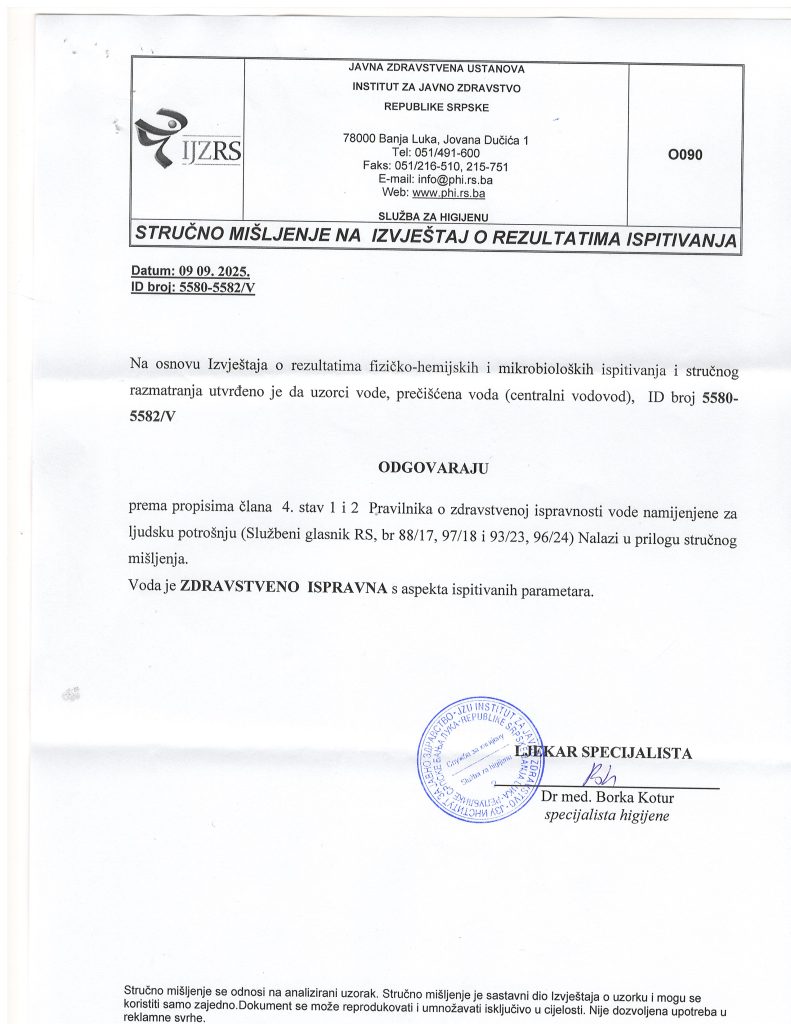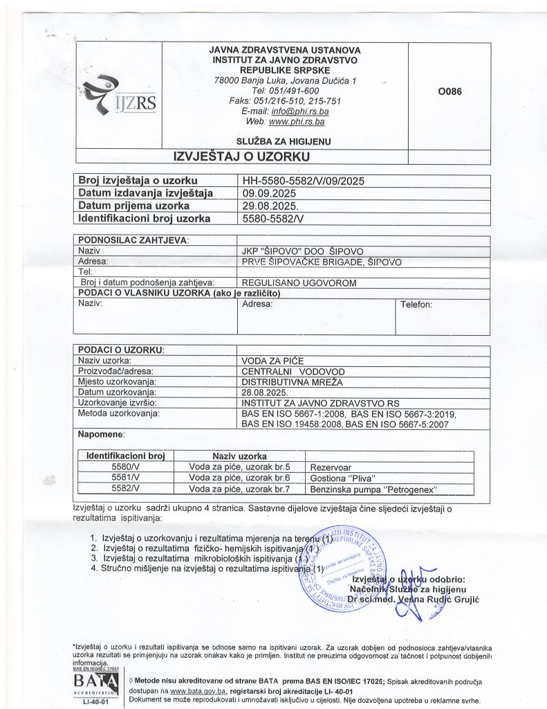 Број извјештаја о узорку: HH-5580-5582/V/09/2025
